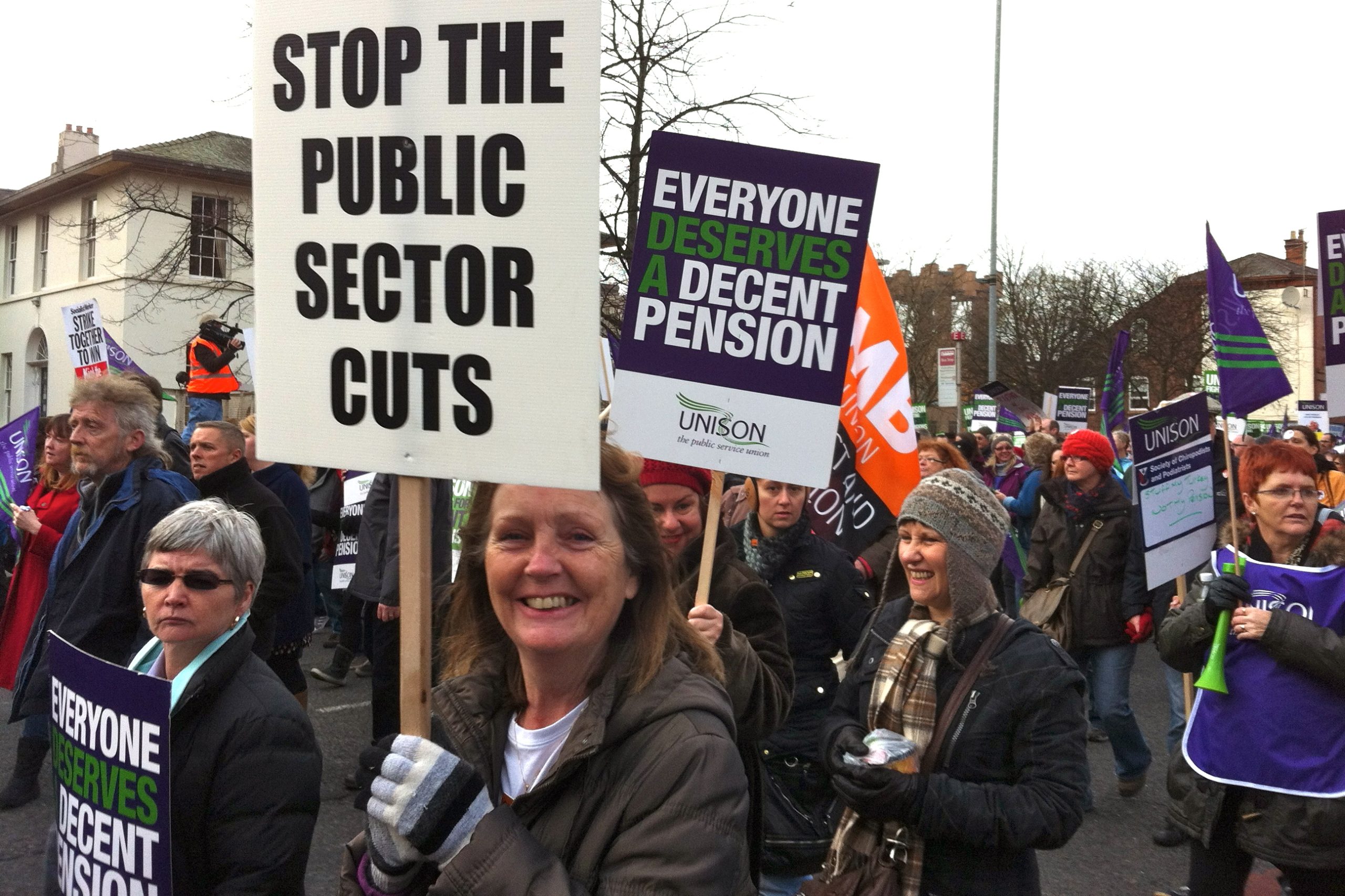 “Three years ago we negotiated changes to our pensions [with Gordon Brown’s Labour government]. We agreed that we would pay more and that we would increase the age that we retire. We realised it was something we had to do to future-proof pensions. But this government [David Cameron’s centre-right government] has come back at us again and said ‘no you will pay more’ and it’s a 50 percent bigger contribution every month and we’re not getting pay rises.”