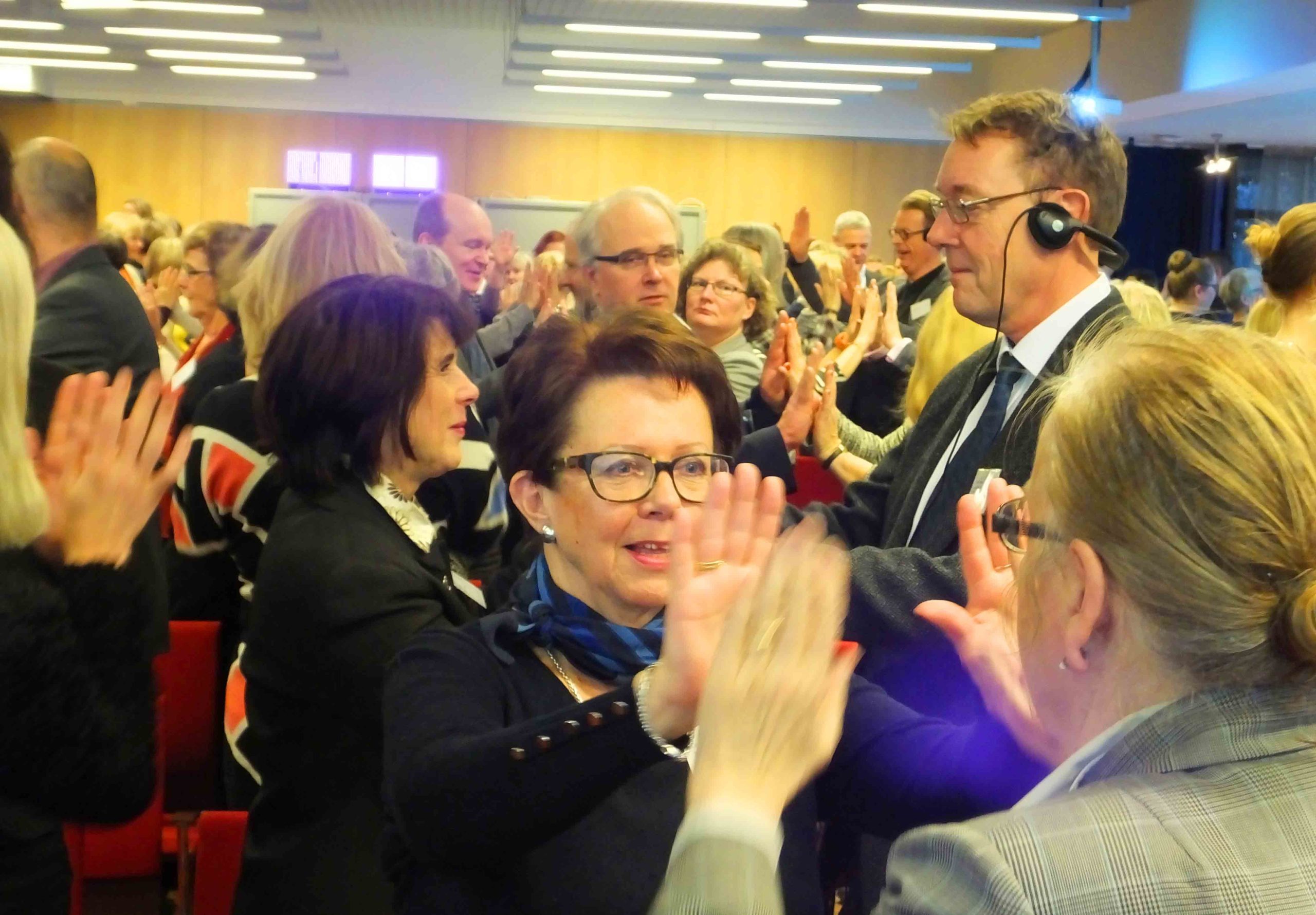 Above: How do you communicate only with your hands? Jennifer Joffs from the Dansfadder company got the conference hall on their feet.