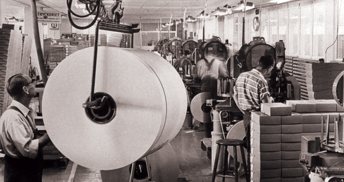 Punch card machines were the computers’ predecessors. Information was stored on cards which each could fit 80 columns of punched holes. IBM started punch card production in Stockholm in 1932. Production peaked in1969 with one billion punch cards. Then computers with screens became more and more common, and the use of punch cards slowly disappeared. The last ever punch card was made in 1980.
